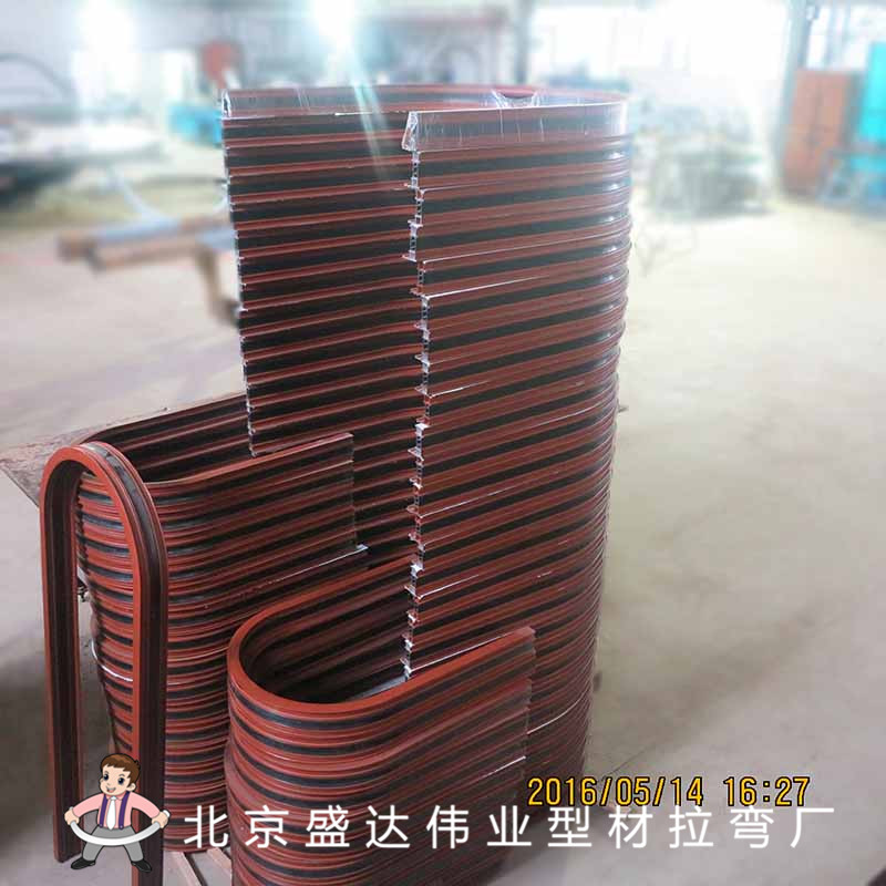 2、 北京盛達(dá)偉業(yè)型材拉彎廠在十余年的工作經(jīng)驗(yàn)中,深入研究,逐步探索,對機(jī)械設(shè)備和工裝夾具進(jìn)行了全面的改造和升級,使斷橋鋁型材的最小彎弧半徑達(dá)到了R=260mm,而且專研完成了斷橋鋁型材半圓形彎弧部分與兩端直線段部分的一體化加工,使得整體窗型(門型)工藝簡化,造型美觀大氣,效率提升,質(zhì)量一流,精度準(zhǔn)確,技術(shù)尖端,增加點(diǎn)成本,提升了效率和美觀度.   獲得了客戶的廣泛好評。
